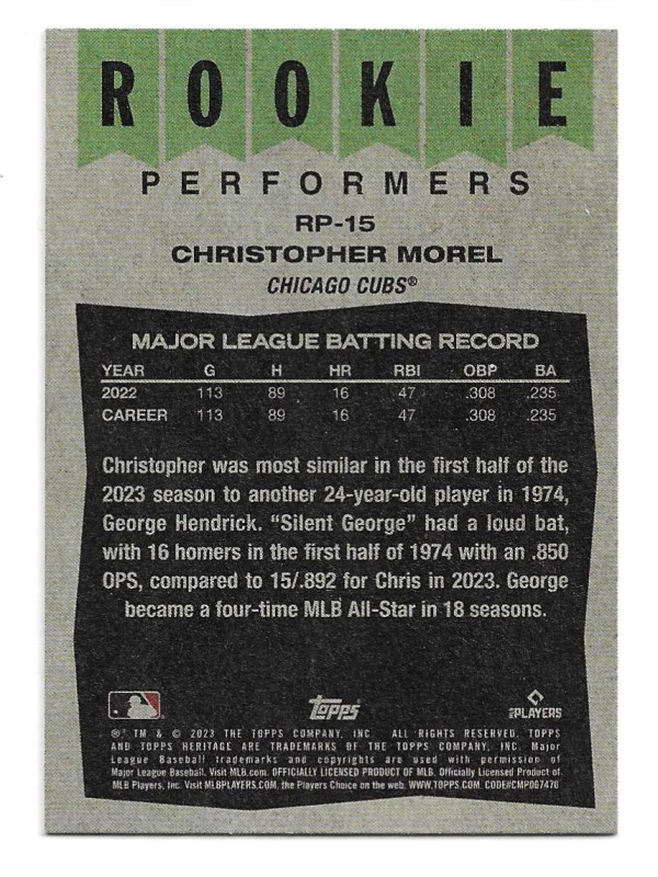 2023 TOPPS HERITAGE ROOKIE PEFORMERS #RP-15 CHRISTOPHER MOREL (RC)