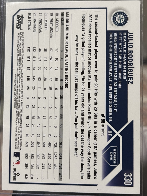 2023 Topps Series One Julio Rodriguez #330 Gold Cup Seattle Mariners