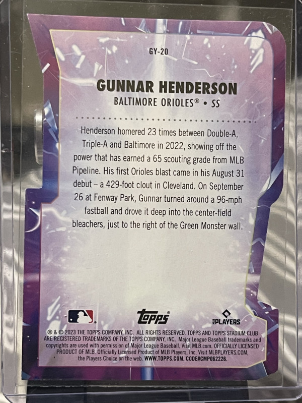 2023 Topps Stadium Club - Goin' Yard Gunnar Henderson #GY-20 Red (RC)