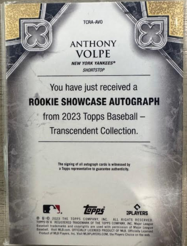 You are purchasing a 2023 Topps Transcendent Anthony Volpe Rookie Topps. You will receive the exact item in the photographs. Thank you for looking.
