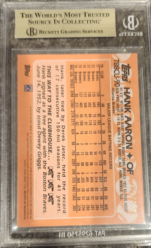 2023 Topps Update '88 Topps Sliver Topps Chrome Blue Refractor Hank Aaron 25/150