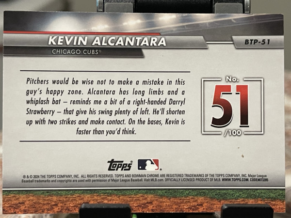 2024 Bowman Bowman Scouts Top 100 Kevin Alcantara #BTP-51 (RC) Refractor Cubs
