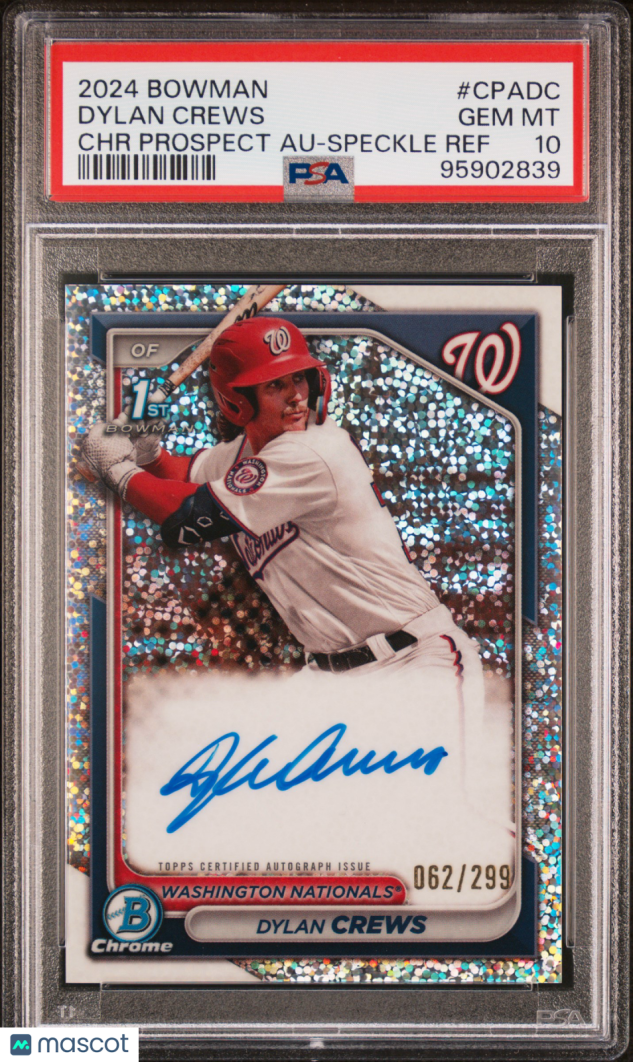 You are purchasing a 2024 Bowman Chrome Prospect Autographs Dylan Crews #CPADC 062/299 PSA 10. You will receive the exact item in the photographs. Thank you for looking.