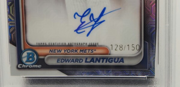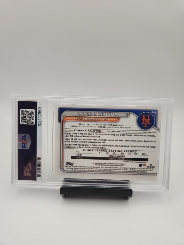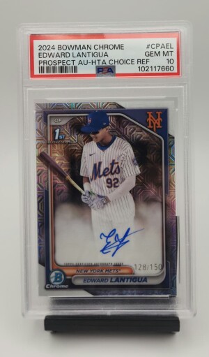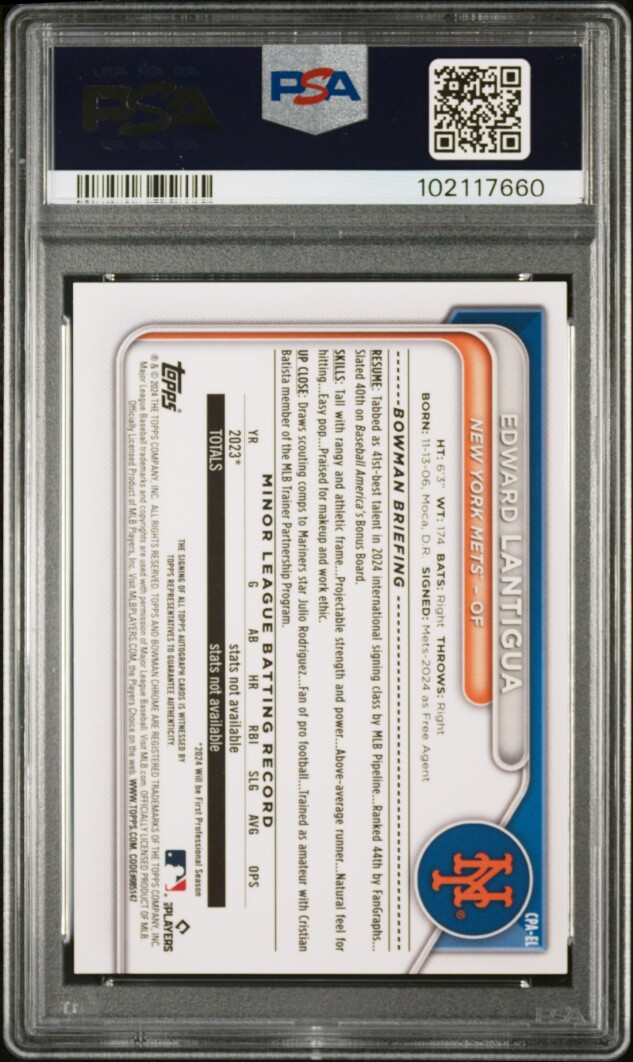 ๐ฅ 2024 BOWMAN CHROME - EDWARD LANTIGUA - 1ST BOWMAN AUTO HTA CHOICE REFRACTOR /150 - PSA 10 GEM MINT - NEW YORK METS