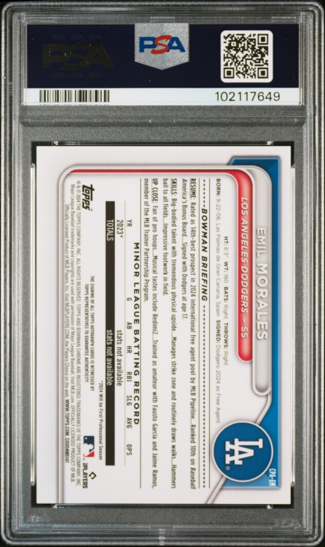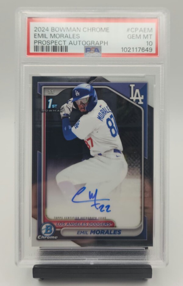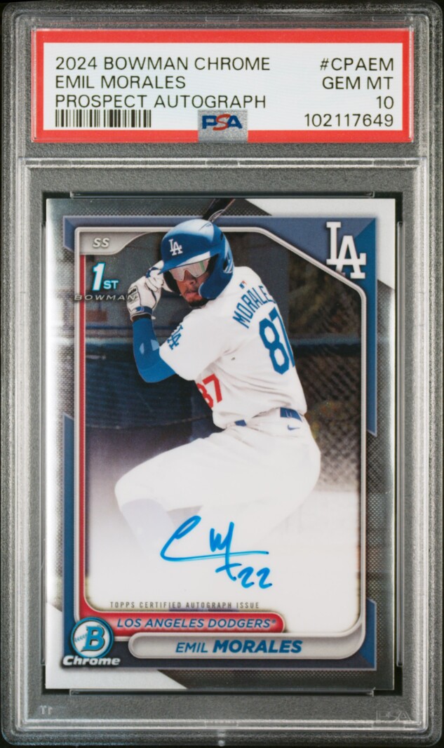 ๐ฅ 2024 BOWMAN CHROME โ EMIL MORALES 1ST BOWMAN PROSPECT AUTO โ PSA 10 GEM MINT