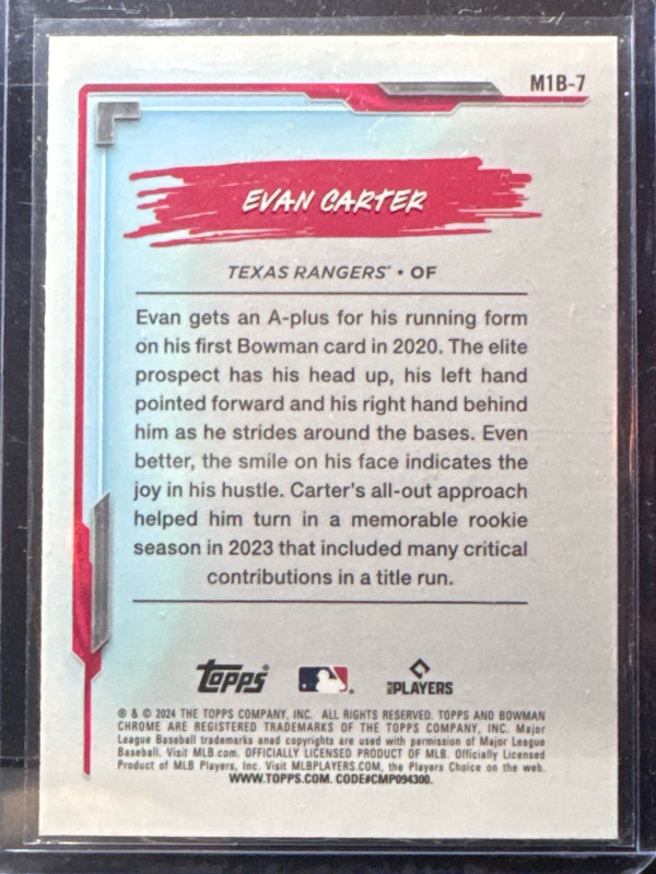 2024 Bowman Chrome Evan Carter My 1st Bowman Mojo Refractor RC Rangers
