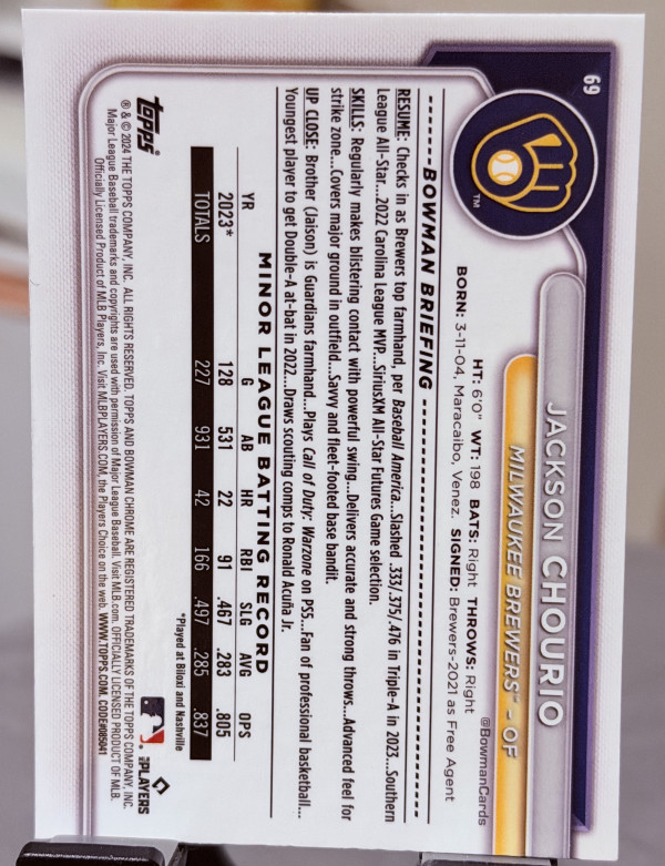 2024 Bowman Chrome Jackson Chourio #69 (RC)