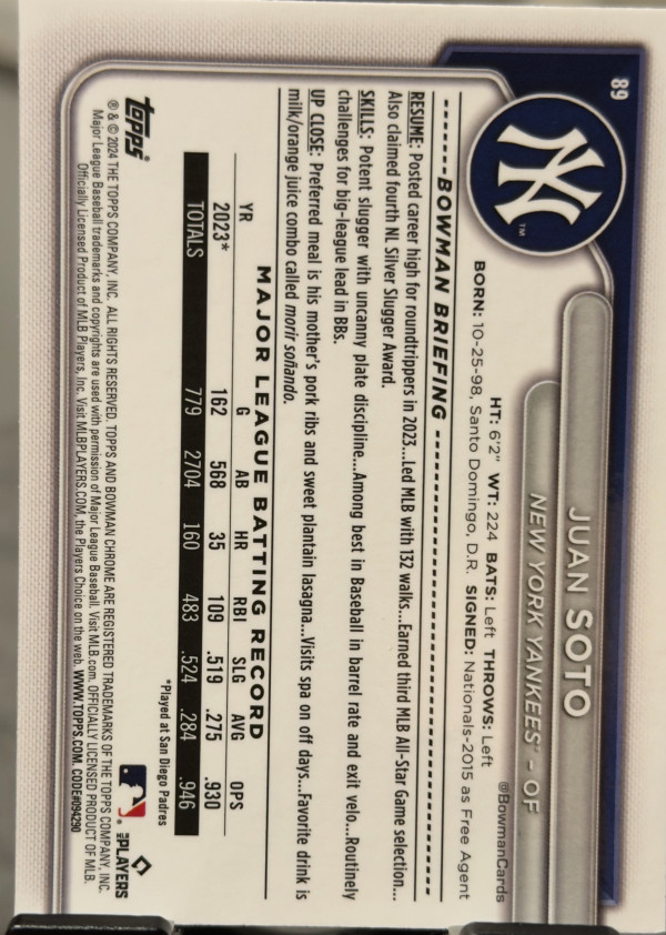 2024 Bowman Chrome - Juan Soto #89 Mojo Refractor