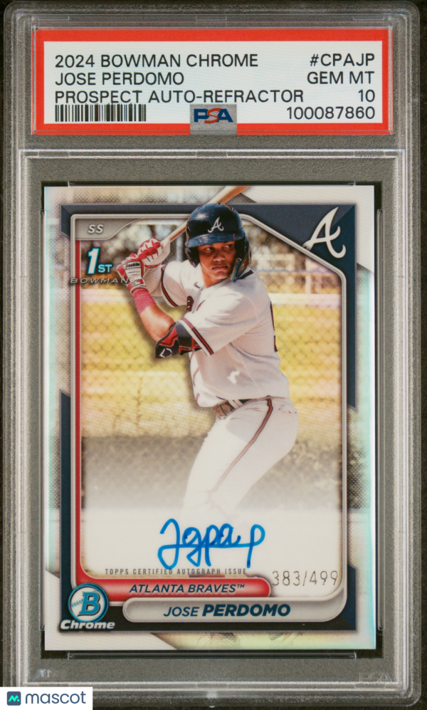 You are purchasing a 2024 Bowman Chrome Prospect Autographs Jose Perdomo #CPAJP Refractor 383/499 PSA 10. You will receive the exact item in the photographs. Thank you for looking.