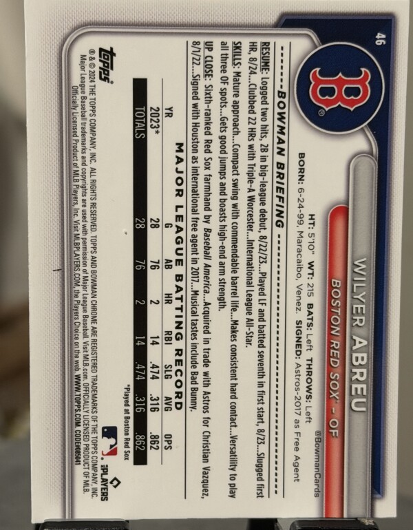 2024 Bowman Chrome Wilyer Abreu #46 (RC)