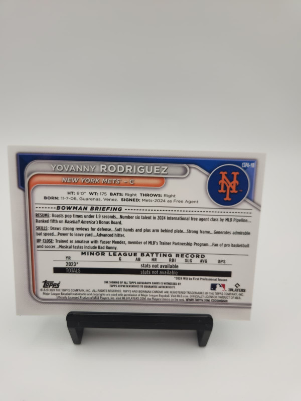 2024 Bowman Chrome Yovanny Rodriguez #CSPA-YR Green Refractor Auto /99 Mets