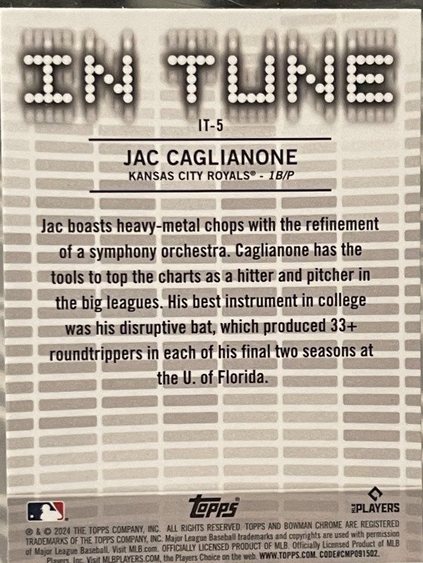 2024 Bowman Draft - In Tune Jac Caglianone #IT-5 (RC)