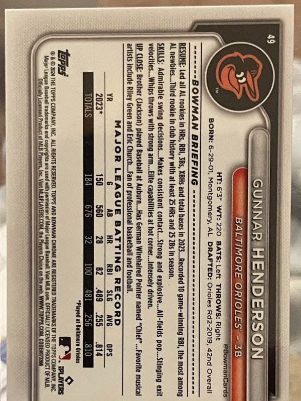 2024 Bowman - Gunnar Henderson #49 Chrome Mojo Refractor