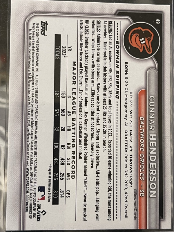 2024 Bowman Gunnar Henderson #49