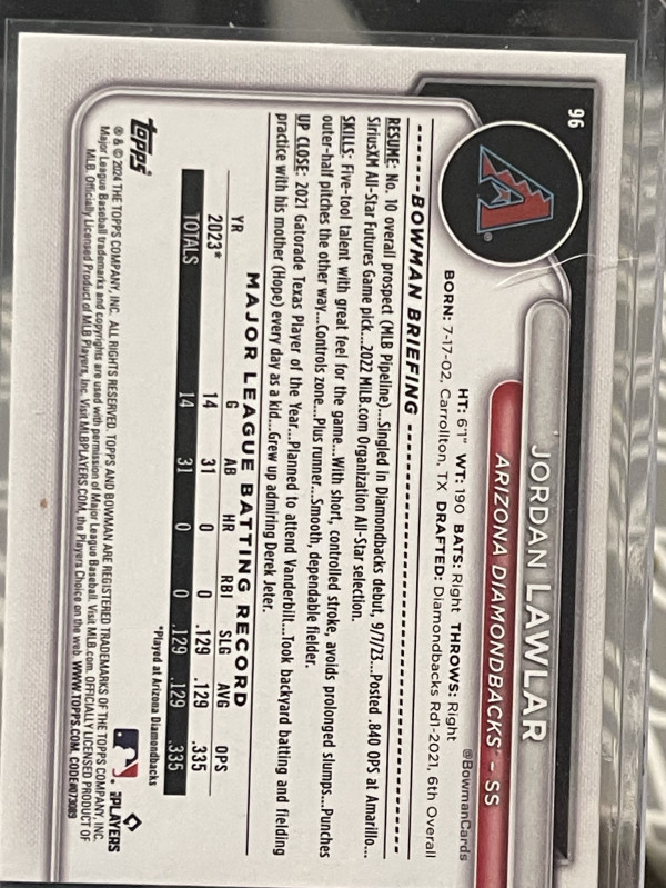 2024 Bowman Jordan Lawlar #96 (RC)
