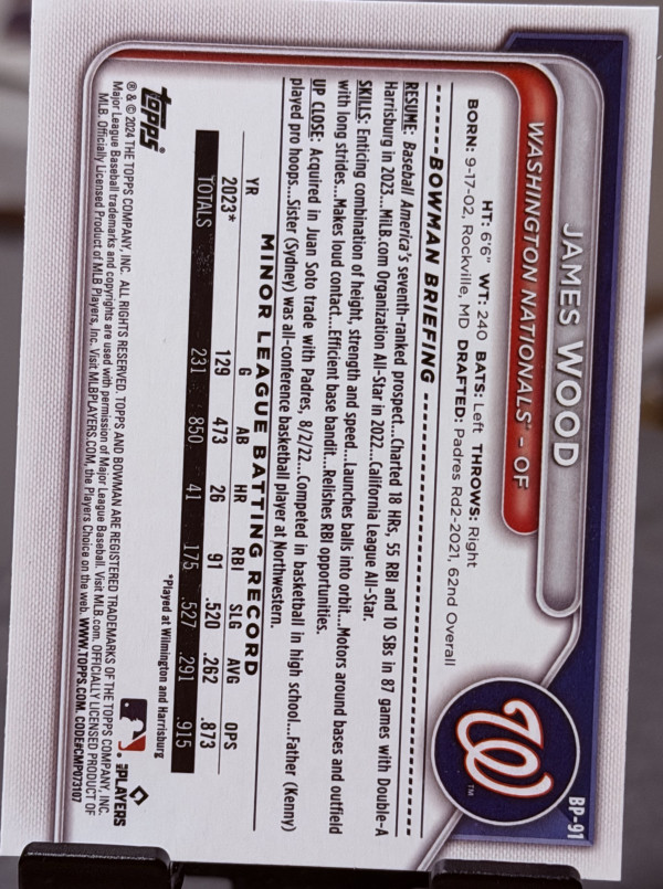 2024 Bowman Prospects James Wood #BP-91 (RC)