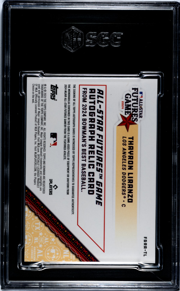 You are purchasing a 2024 Bowman's Best Thayron Liranzo #FGRA-TL All Star Futures Game Relic Autograph Purple Refractor SGC 10 Auto 10. You will receive the exact item in the photographs. Thank you for looking.