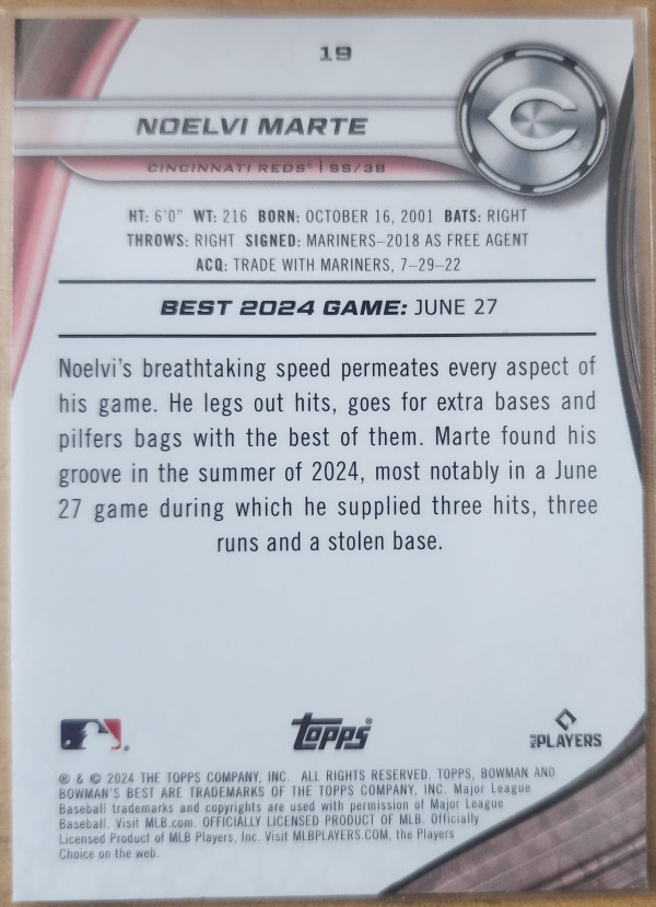 2024 Bowman's Best Noelvi Marte Yellow Refractor 31/75