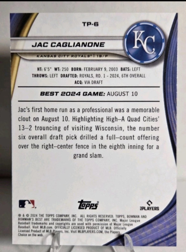 2024 Bowman's Best - Prospects TP-6 Jac Caglianone, Kansas City Royals