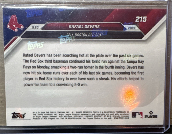 2024 MLB Topps NOW 215 RAFAEL DEVERS HR IN 6 STRAIGHT BOSTON RED SOX