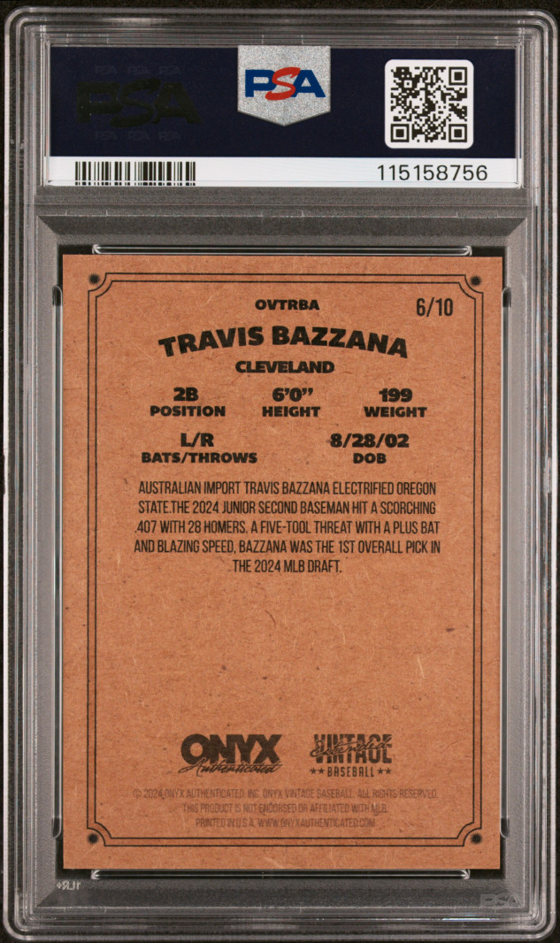 2024 Onyx Vintage Extended #OVTRBA Travis Bazzana Black Bordered PSA 8