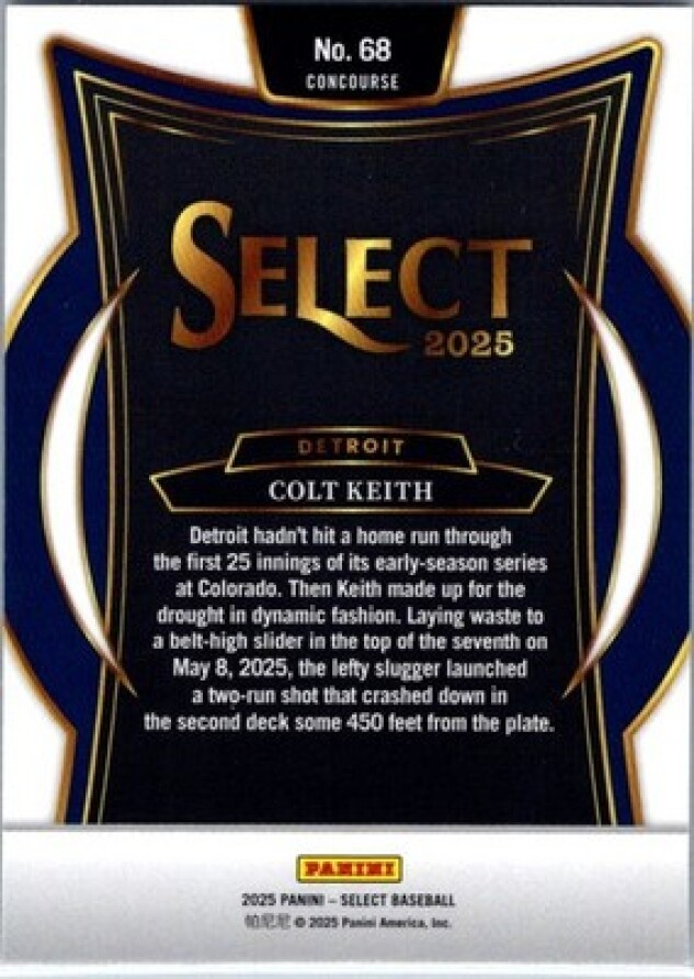 This is a nice example of a 2024 Panini Select #30 Colt Keith