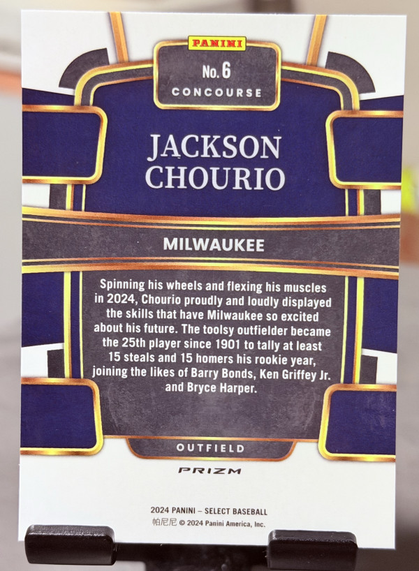 2024 Panini Select - Concourse Jackson Chourio #6 Tri-Color Prizm (RC)
