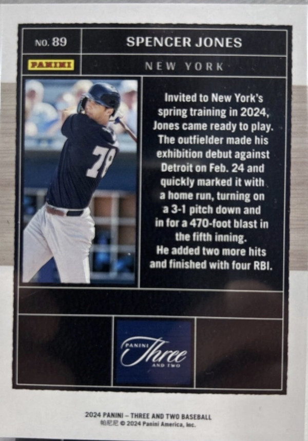 2024 Panini Three and Two Spencer Jones /99 Prospect #89 Yankees