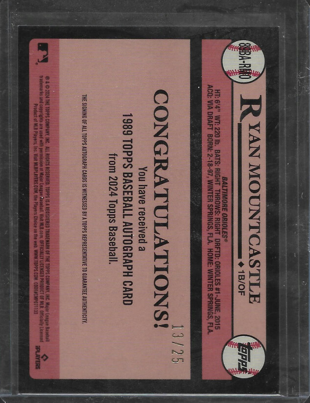 2024 Topps 1989 Topps Baseball Autograph Ryan Mountcastle #89BA-RM /25