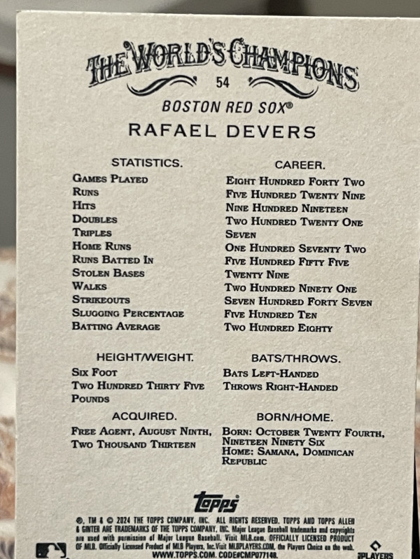 2024 Topps Allen & Ginter - Rafael Devers #54