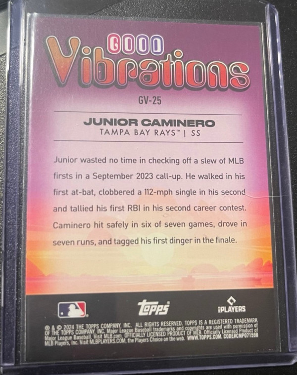 2024 Topps Big League - Good Vibrations GV-25 Junior Caminero, Tampa Bay Rays (RC)