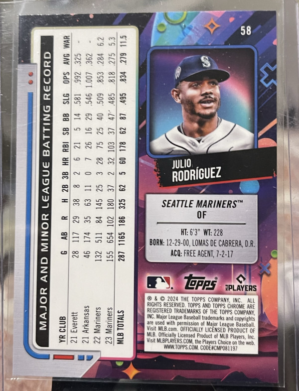 2024 Topps Chrome Cosmic #58 Julio Rodriguez, Seattle Mariners