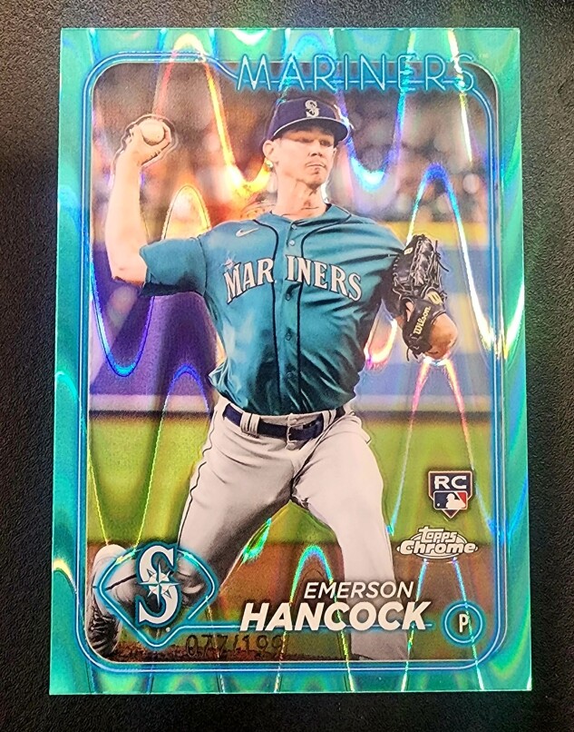 Beautiful teal wave refractor, color match for Seattle's Emerson Hancock. This guy just threw a gem last night with 9K in 6 innings. Thanks for checking out my store.
