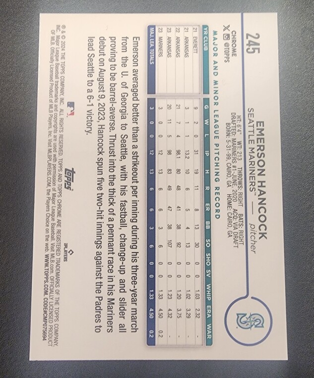 2024 Topps CHROME Emerson Hancock Rookie 077/199