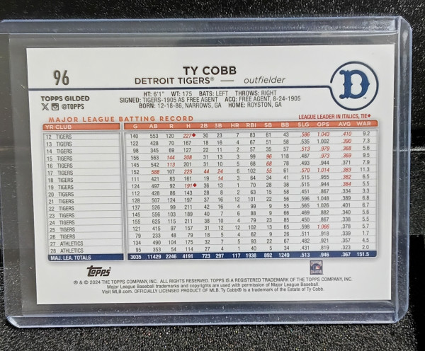 2024 Topps Chrome Gilded Ty Cobb #96 Gold Wave Refractor 10/75 Tigers