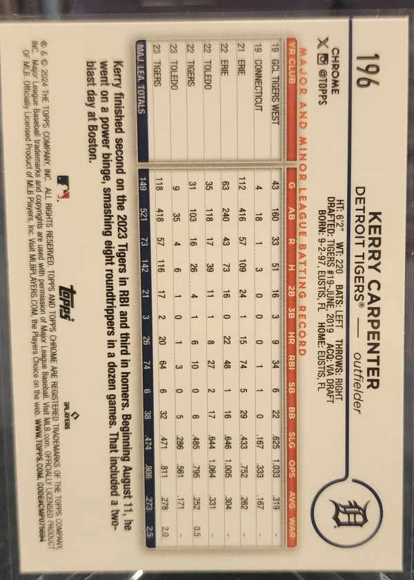 2024 Topps Chrome Kerry Carpenter Purple /275