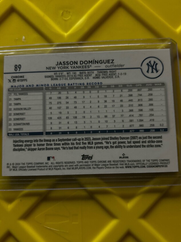 2024 Topps Chrome Logofractor Jasson Dominguez RC Purple Refractor /250