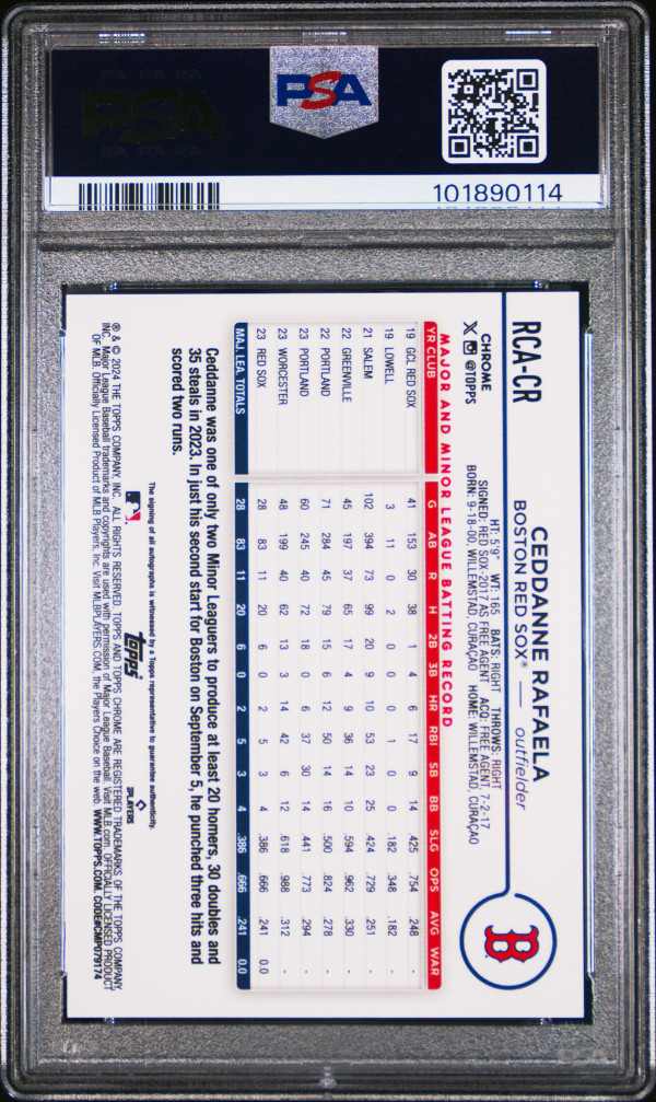 You are purchasing a 2024 Topps Logofractor Edition MLB Refractor Chrome Autographs Ceddanne Rafaela #RCACR Orange 06/25 PSA 9. You will receive the exact item in the photographs. Thank you for looking.