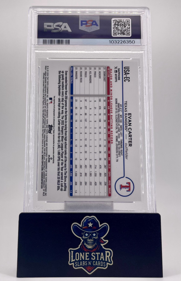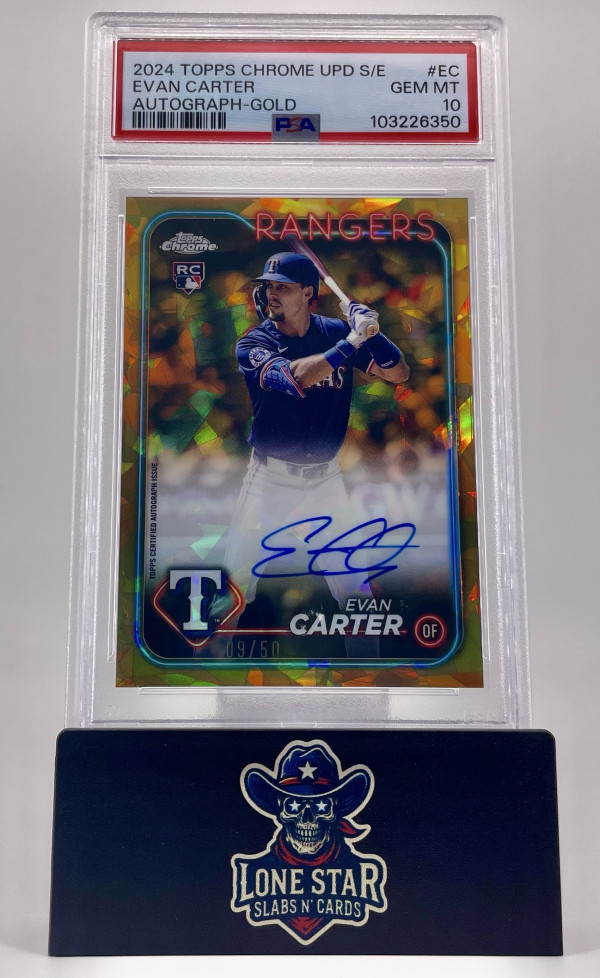 2024 Topps Chrome Sapphire Update Series Evan Carter Chrome Sapphire Autograph – Gold PSA 10 (/50)