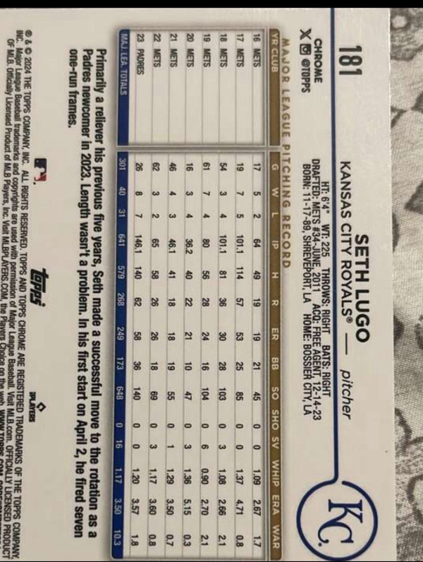 2024 Topps Chrome - Seth Lugo #181 X-Fractor