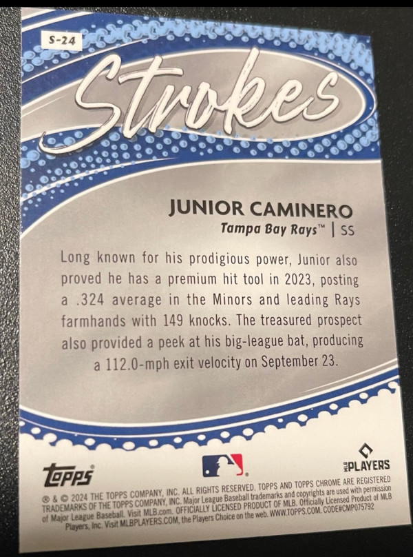 2024 Topps Chrome - Strokes Refractor S-24 Junior Caminero (RC)