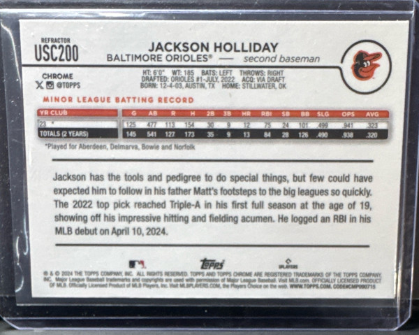 2024 Topps Chrome Update Jackson Holiday RC Refractor USC200 Orioles Holo Silver