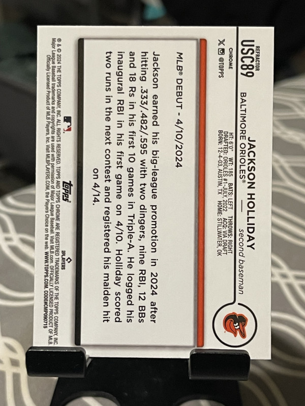 2024 Topps Chrome Update Series Rookie Debut Jackson Holliday #USC89 Rainbow Refractor