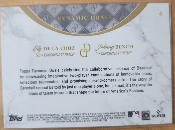 2024 Topps Dynamic Duals Elly De La Cruz/ Johnny Bench