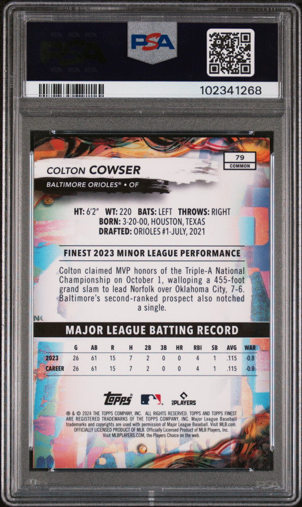 You are purchasing a 2024 Topps Finest Colton Cowser #79 Red Lava Refractor 03/10 PSA 10. You will receive the exact item in the photographs. Thank you for looking.
