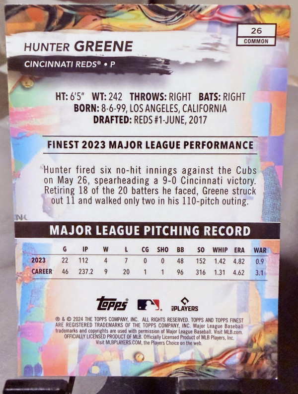 2024 Topps Finest - Common Hunter Greene #26