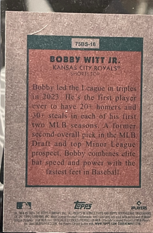 2024 Topps Heritage Bobby Witt Jr. #75BS-16