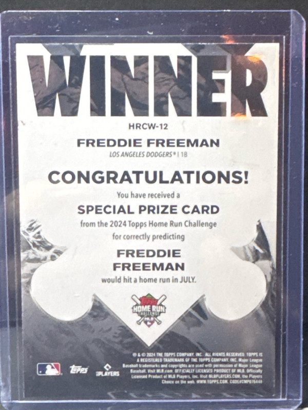 2024 Topps Home Run Challenge Winner #HRCW-12 Freddie Freeman July /507 SP