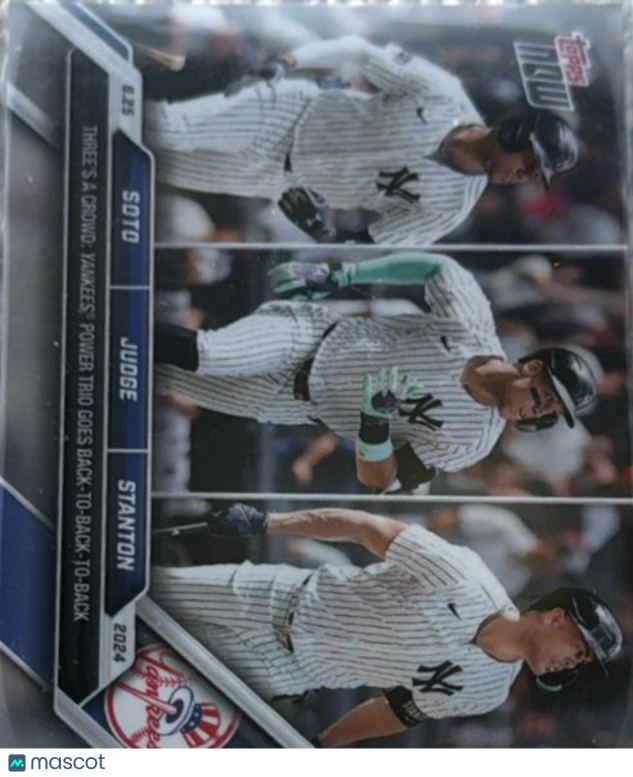2024 Topps Now #595 Juan Soto / Aaron Judge / Giancarlo Stanton Listed With Mascot.