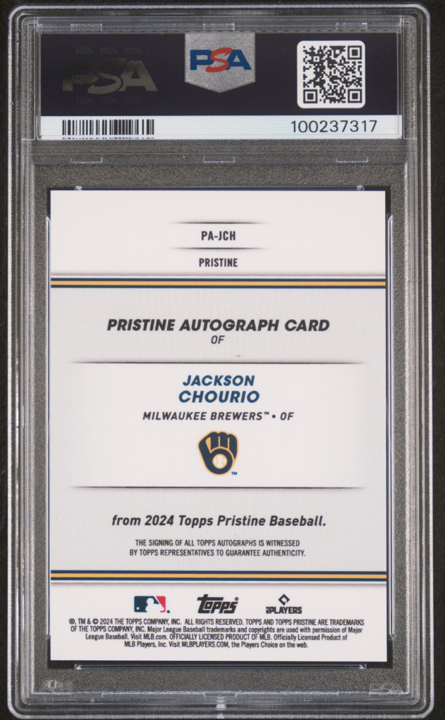 2024 Topps Pristine Pristine Autographs Jackson Chourio Autograph-Purple Pristine